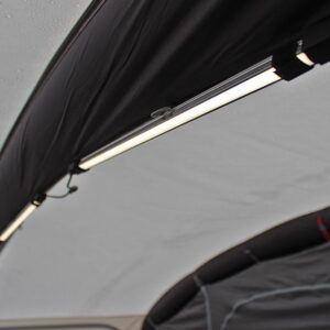 The Lumi-Link Tube Lighting System is a revolutionary triple roof LED tube light kit, which has been designed for compatibility with all of our family tents, drive away awnings, and caravan awnings from 2018 onwards, using a simple Velcro-in system, allowing you to transform the internal evening ambience of your Tent/Awning on those darker nights in the great outdoors. There are three power options available, including a mains connection, USB connection (requiring 12V USB Charging & Power Hub) or car cigarette lighter connection. We have introduced six dimmable brightness settings, allowing these accessories to serve a range of purposes, from a brilliant ceiling light to illuminate the internal space to a dim ‘night light’ for children. A remote-controlled dimmer makes switching between each brightness setting effortless, while a robust hard-case (included) ensures this kit is kept safe when packing and transporting